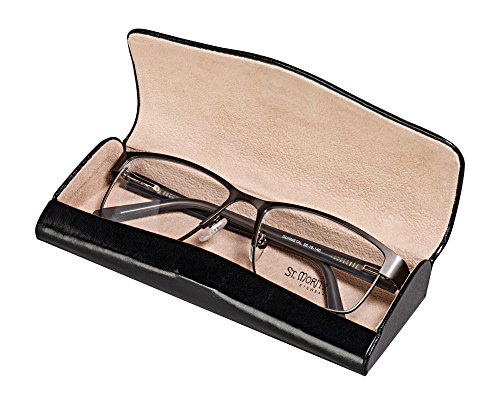 Glasses Case For Men & Women, Hard Eyeglass Case W/ Magnetic Closure In Faux Leather, Black