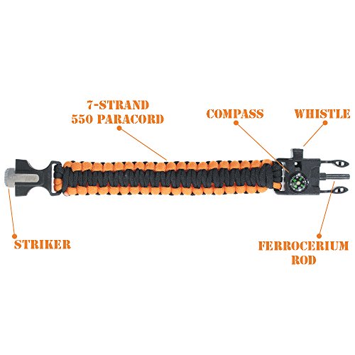 - MULTI-FUNCTIONAL: Use each component of the bracelet together or separate; the possibilities are endless! Use Paracord to tie down your tent, the flint for starting a fire, explore with the compass, and use the scraper as a small knife. Packed with power, this bracelet is an essential for any outdoor enthusiast in your life.