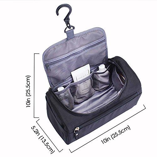 - LARGE CAPACITY: 10" x 5.2" x 6", Big enough to hold your basic travel toiletries and cosmetics, without being too bulky to fit in carry-on bag or backpack.