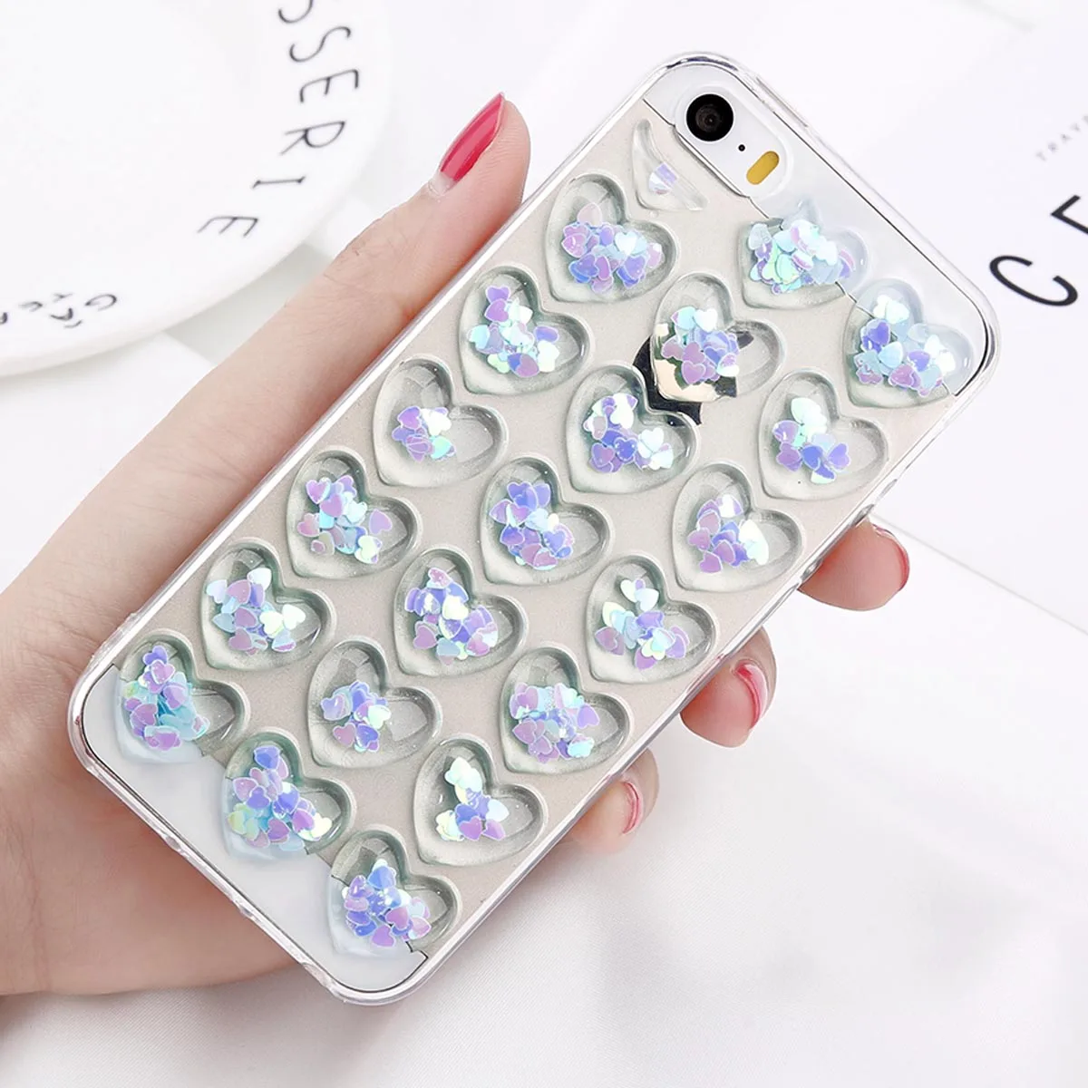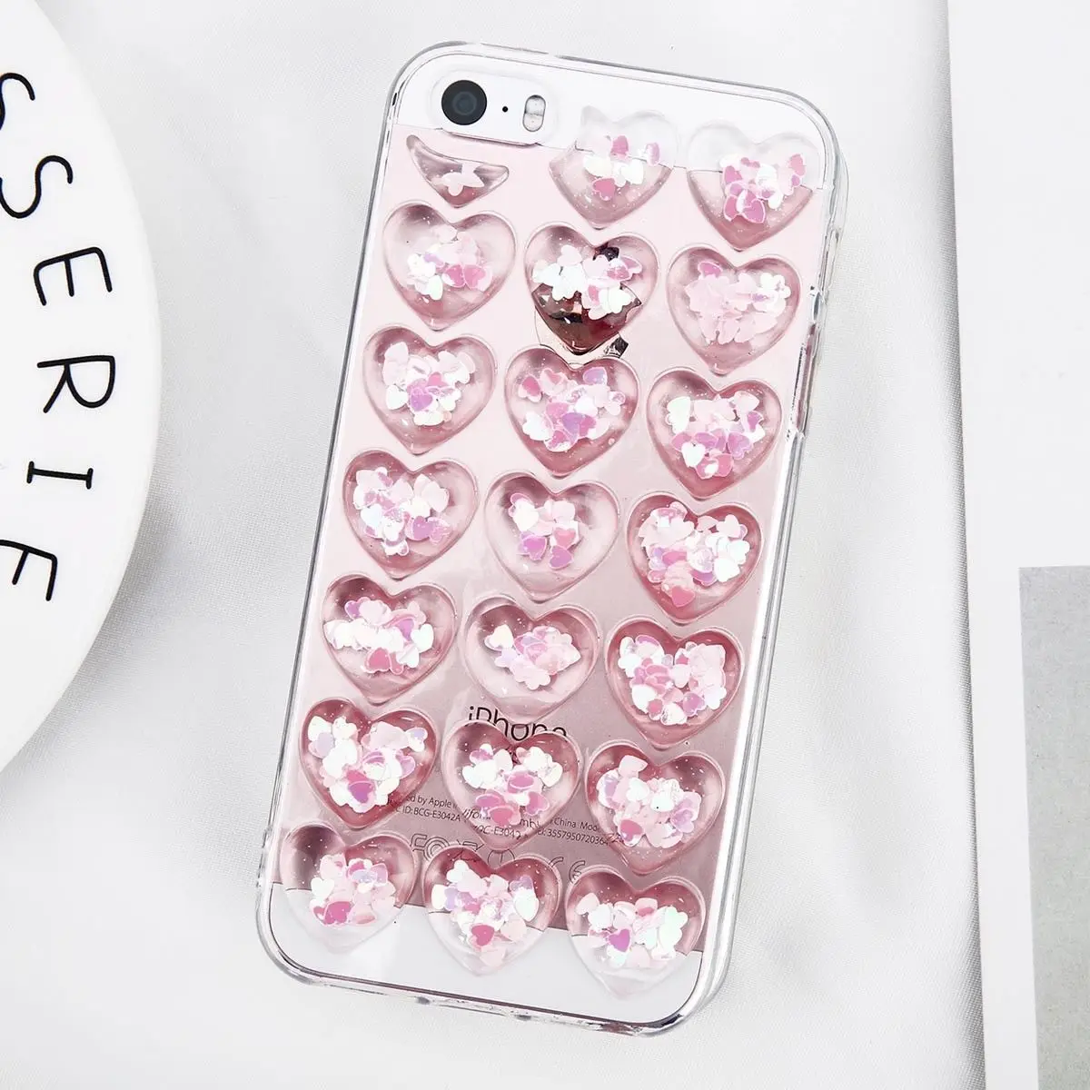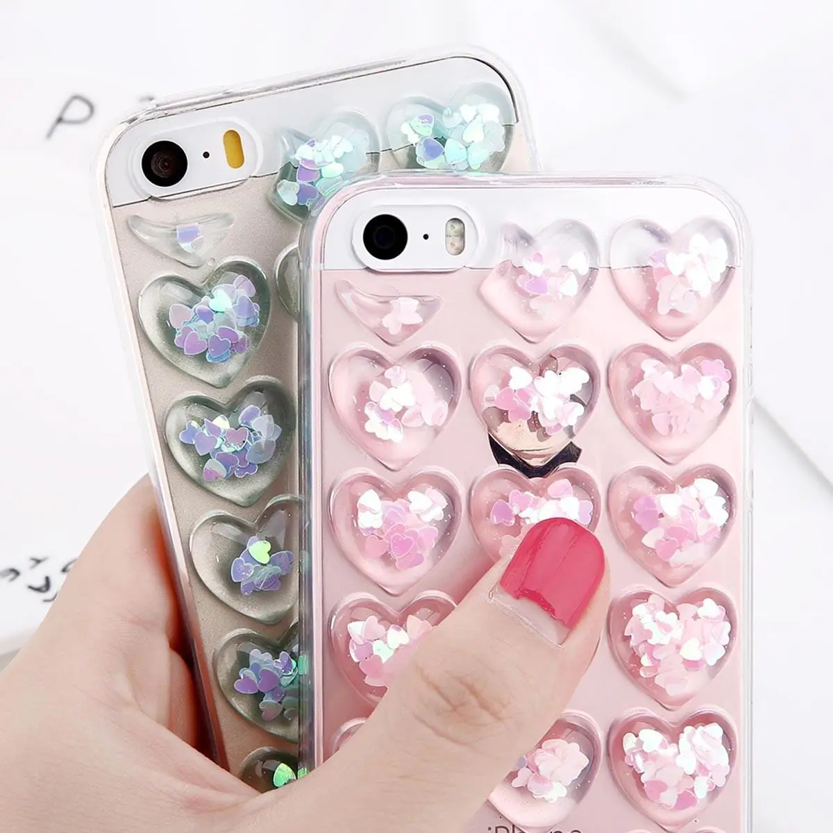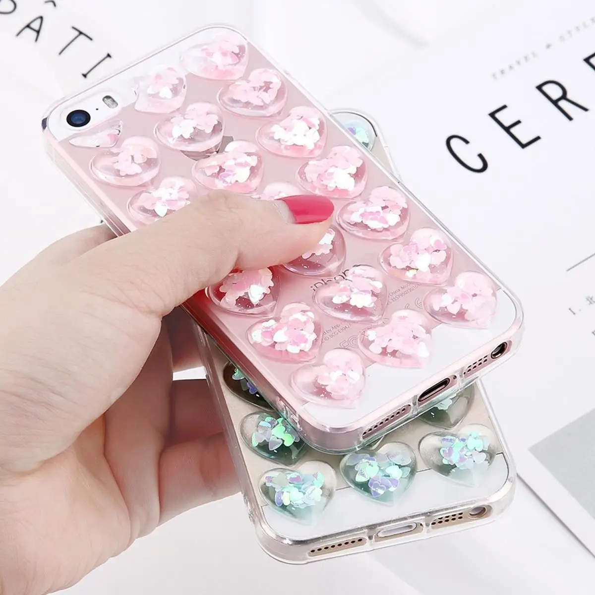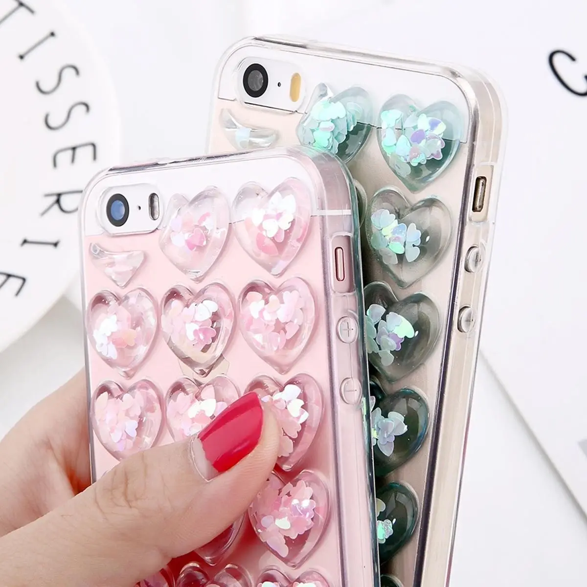 Style:Transparent Clear 3D Love Heart Liquid Quicksand Case