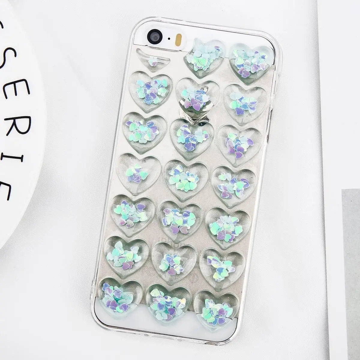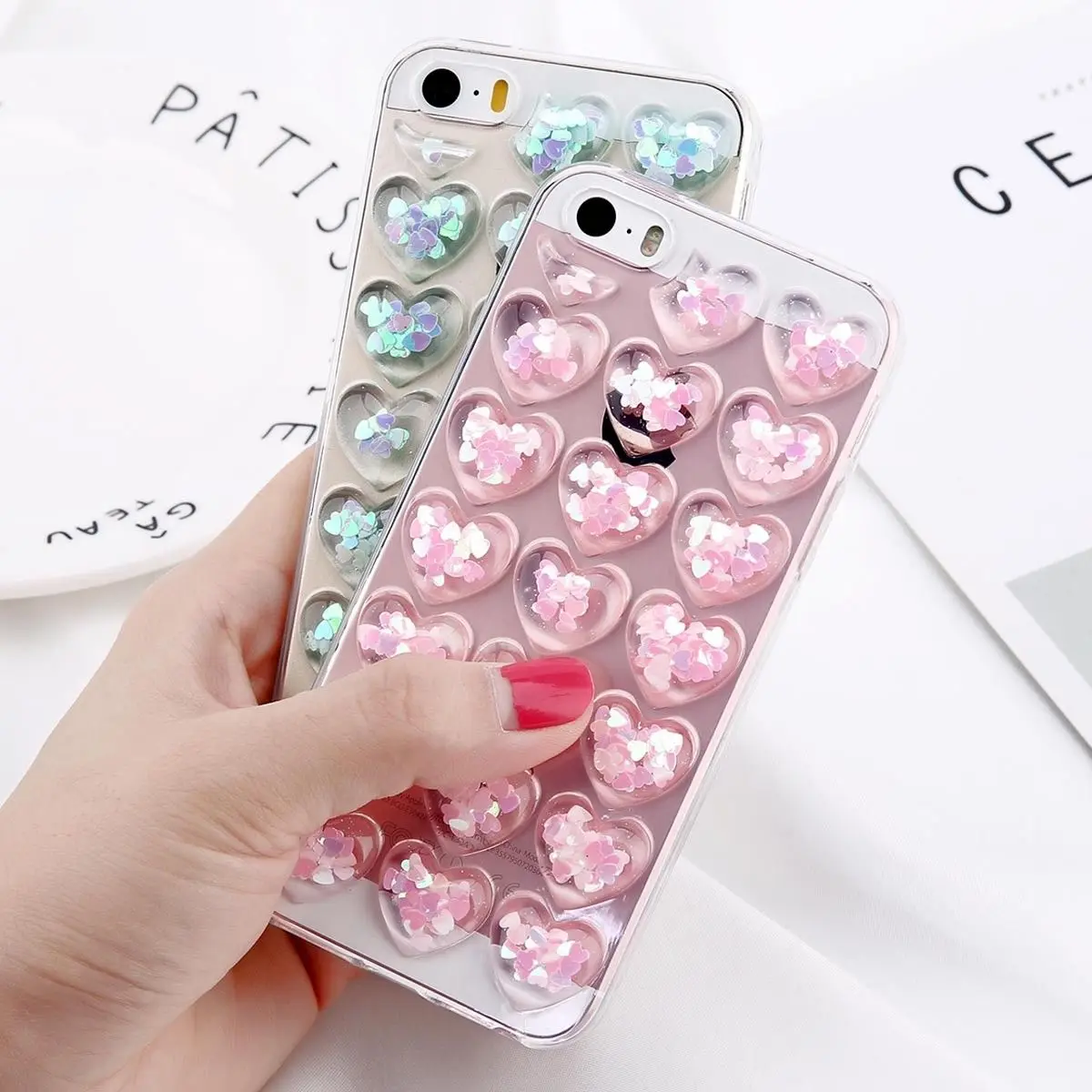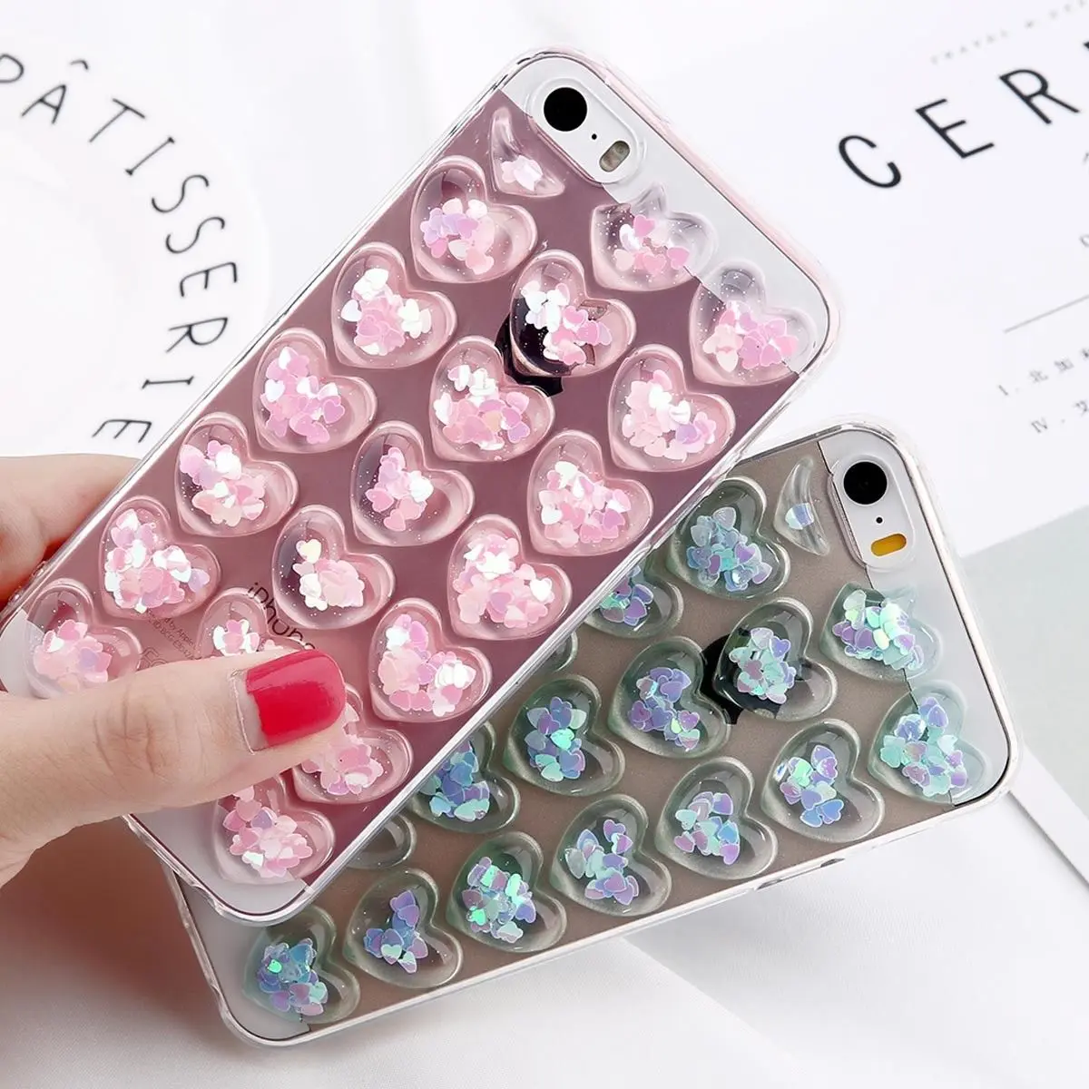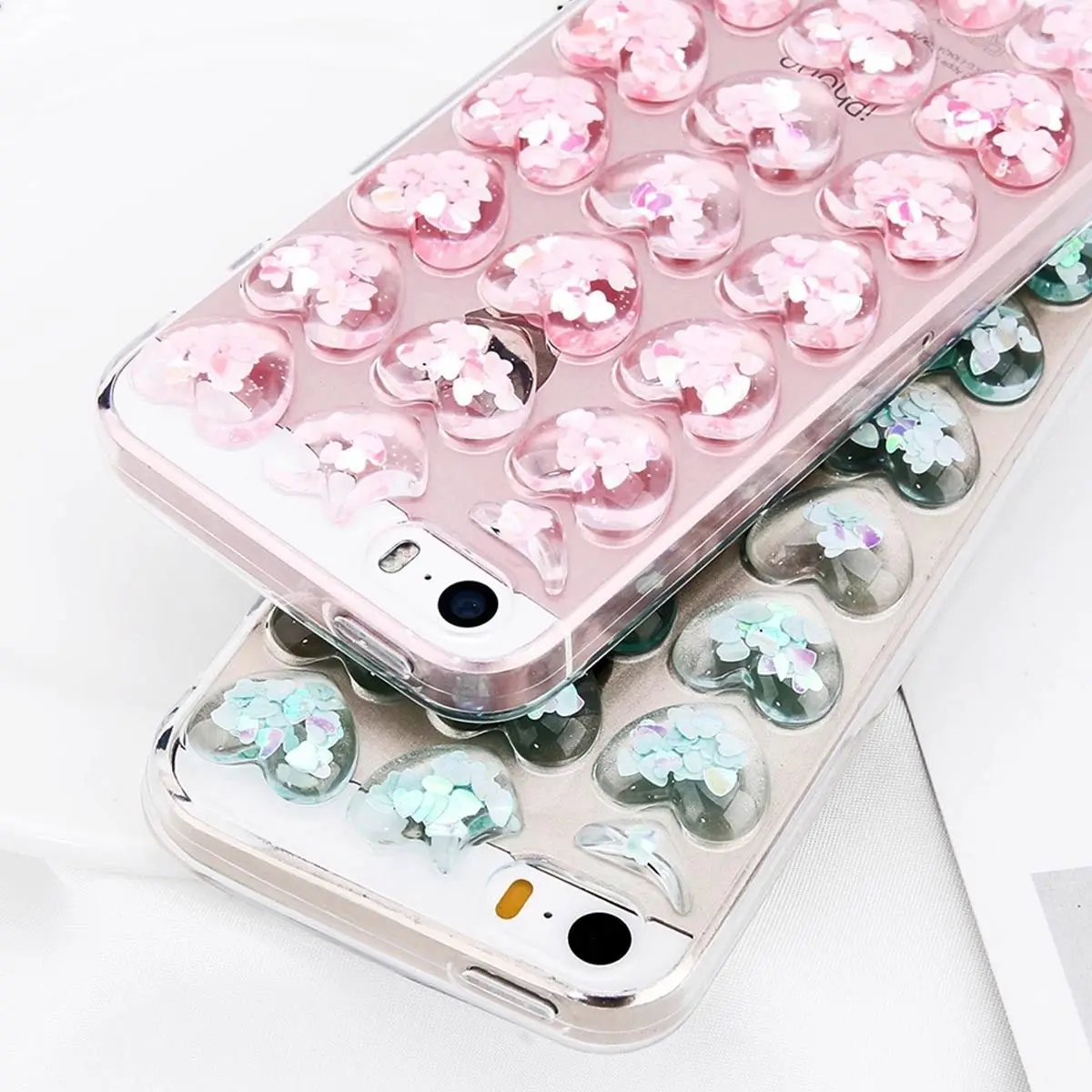 Style:Transparent Clear 3D Love Heart Liquid Quicksand Case