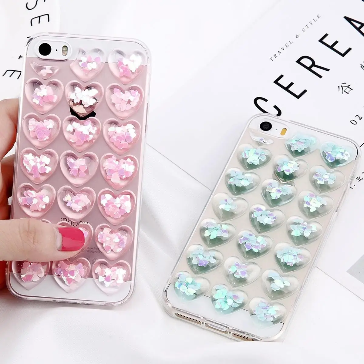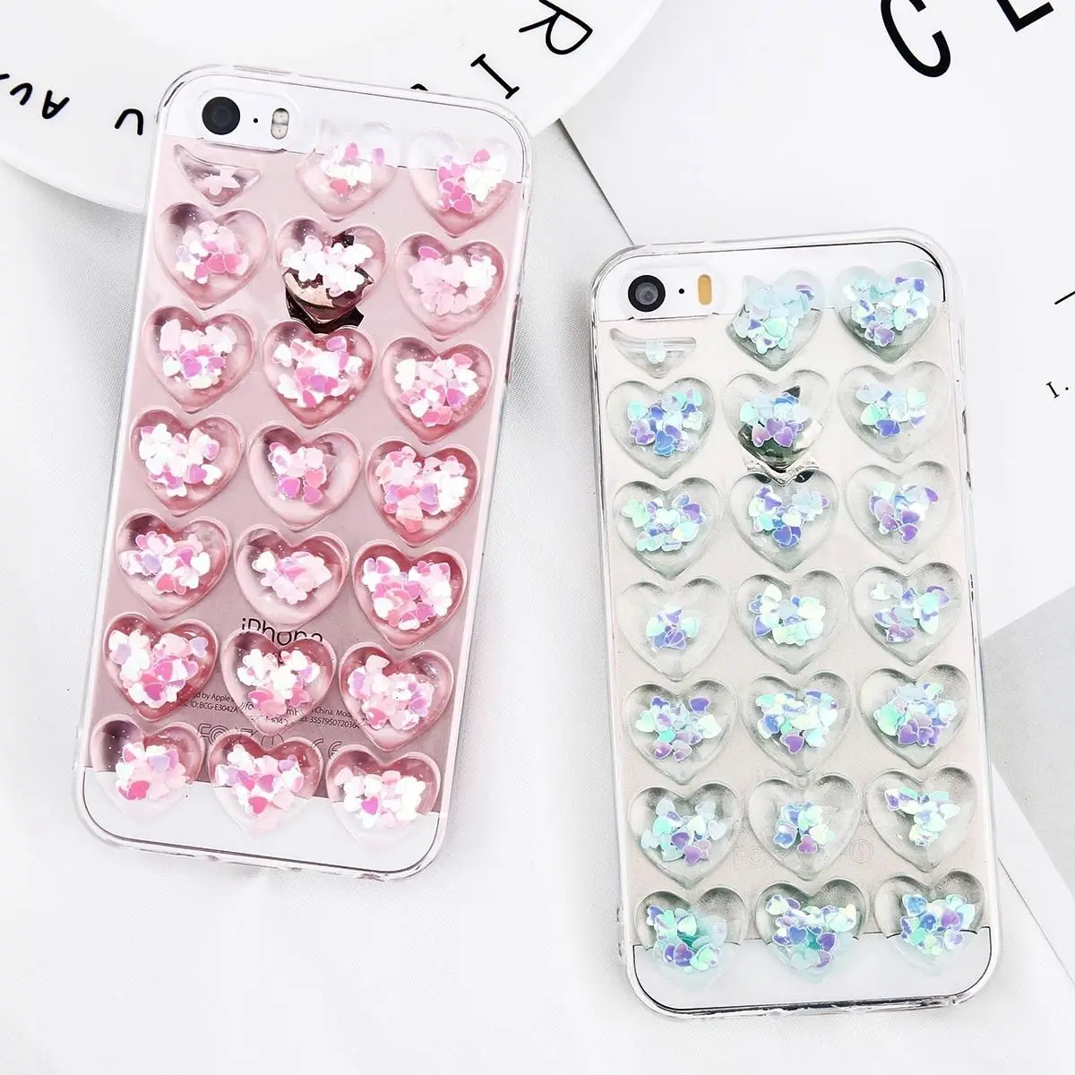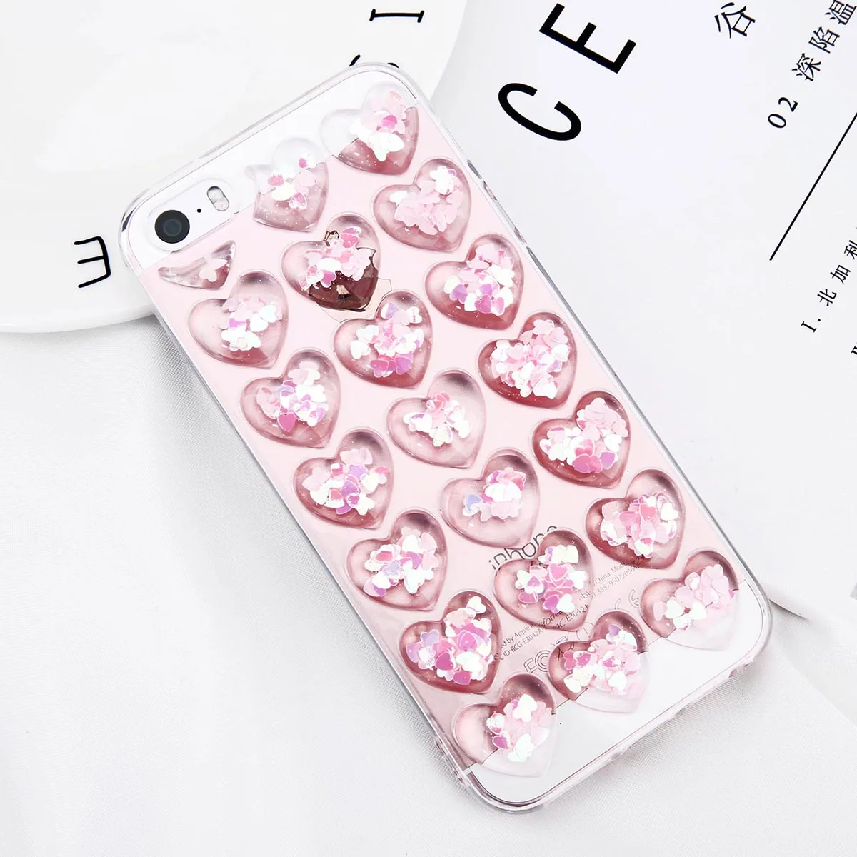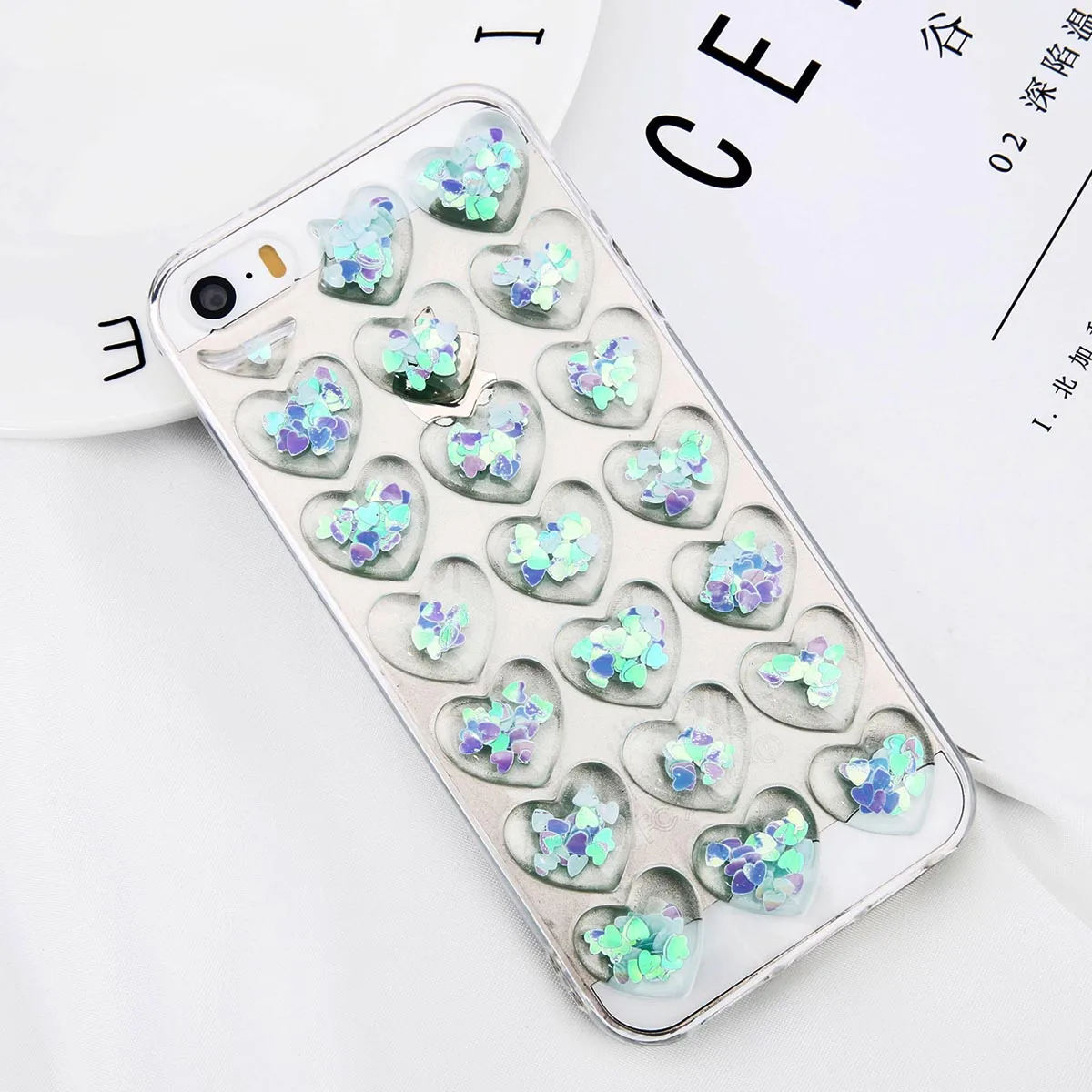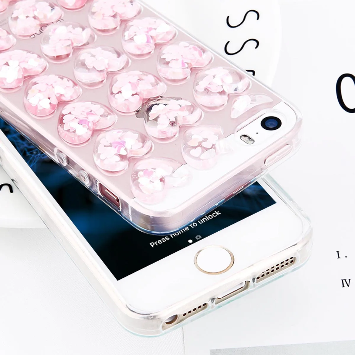 Style:Transparent Clear 3D Love Heart Liquid Quicksand Case
