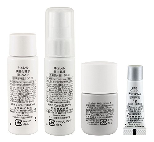 [가오큐렐미백 트라이얼 키트2 73ml]서는,투명감 어느(있는) 윤택 피부에 유지하고, 멜라닌의 생성을 억제해 기미(얼룩) 메밀국수 카《스》를 막는다,건조성 민감성 피부를 생각한 저 자극성의 미백 스킨 케어세트입니다.【세트내용】미백 화장수2×30ml미백 유액×30ml미백UV밀크(SPF30PA++)×10ml미백 미용액×3g(견본) ●무향료 무착색 알코올 프리(에틸알코올무 첨가) ●의약부외품