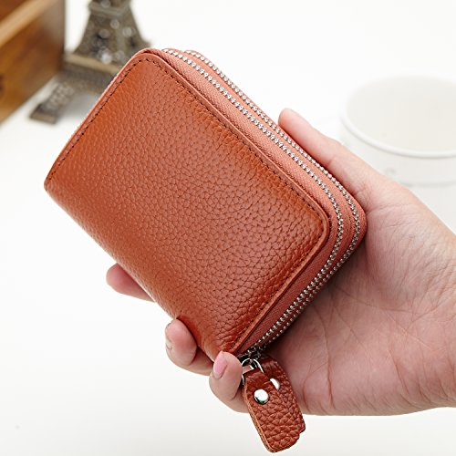 -. Title : Unisex RFID Blocking Wallet,Credit Cards,Business Cards Driver License Genuine Leather Double Zipper Small Purse