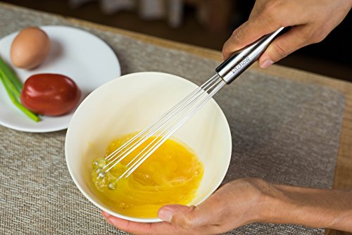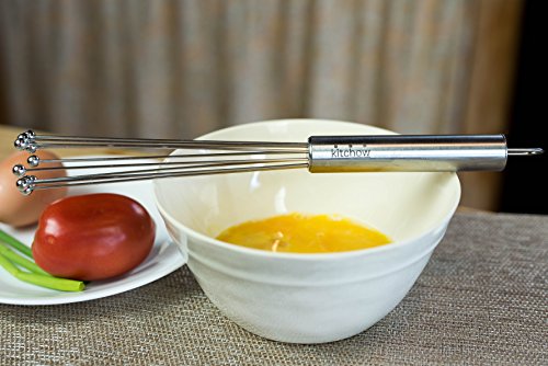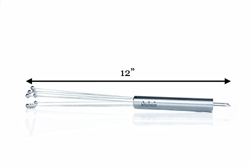 - Feature : MULTIPURPOSE KITCHEN TOOL: Cooking unforgettable meals means having the right kitchen accessory. The Kitchow Ball whisk is great for making thick pancakes, fluffy biscuits, and delicious glazes and sauces. / LESS EFFORT NEEDED: Our ball whisk is made of stainless steel to offer more durability than a plastic whisk or wooden whisk, to be sure, but it is also a conical shape to reduce resistance and ease tension on the wrist and forearm. / BEAUTIFUL DESIGN: Both the conical shape and the shiny stainless steel structure make our unique kitchen blender a welcome addition to the kitchen no matter your style or color scheme. / DISHWASHER SAFE: Most whisks are a pain to clean because food and particles get stuck in the balloon wire basket, however, our straight-lined conical shape makes cleaning easier than ever. Not only that, but it's dishwasher safe! / SATISFACTION GUARANTEE: We want you to love using our whisk for every meal of the day. That's why it comes backed by a 30-day money back guarantee.
