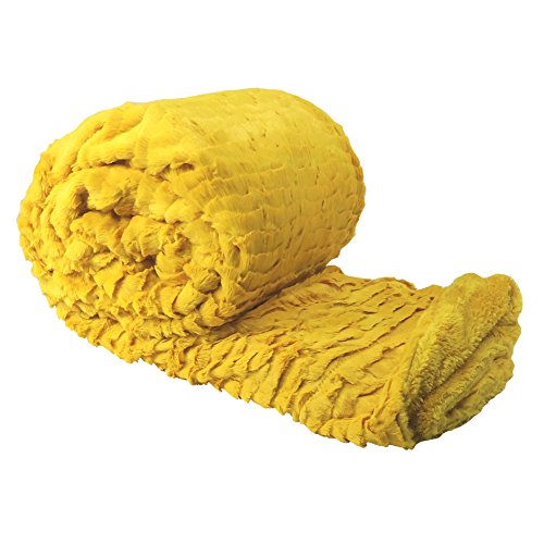 BNF Home Colleen Air Brushed Faux Fur Bed Couch Cover Throw Blanket, Lemon Curry 60" x 70"