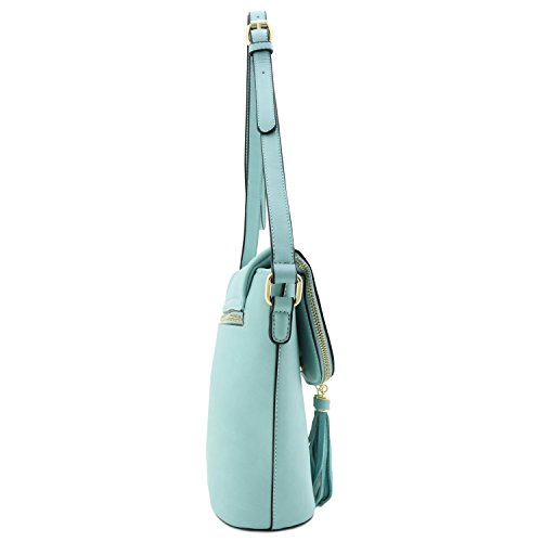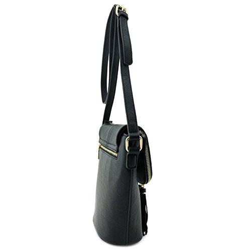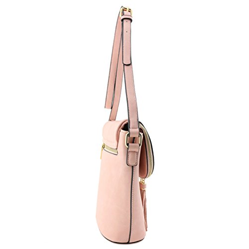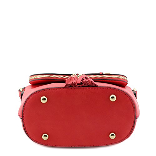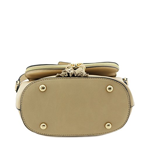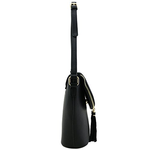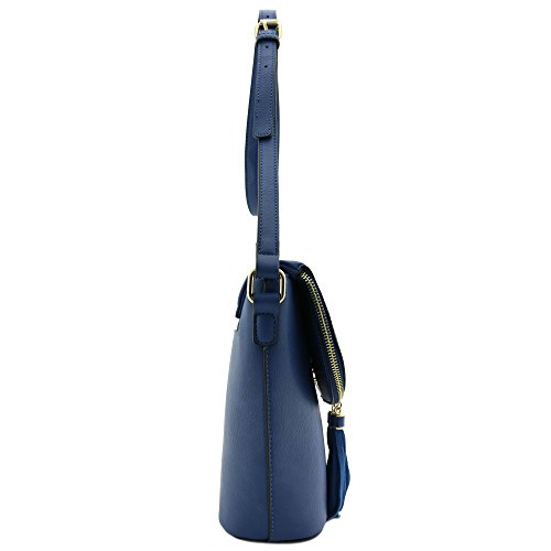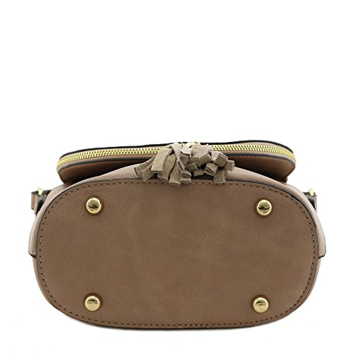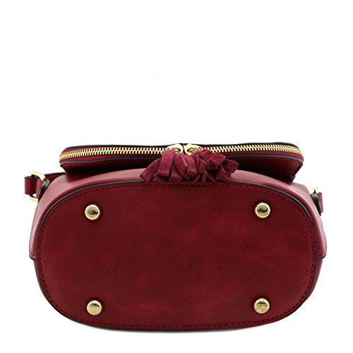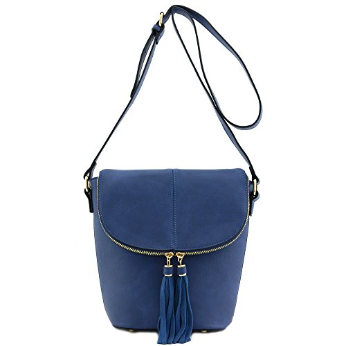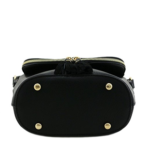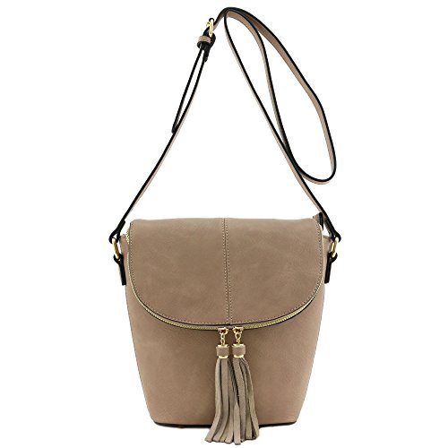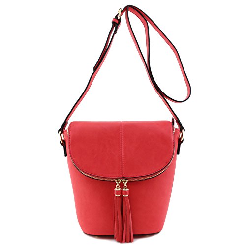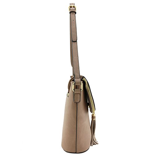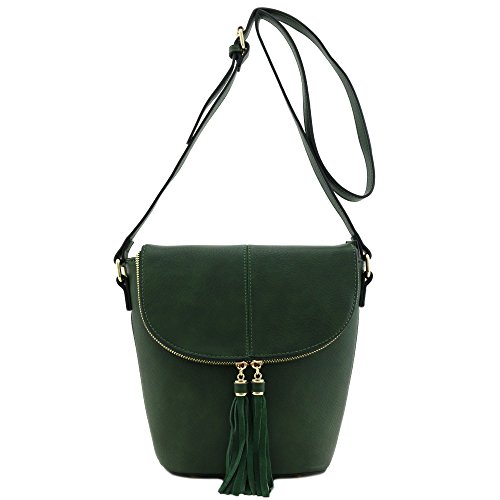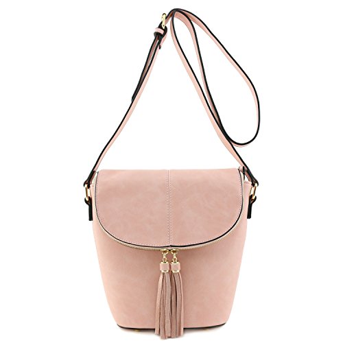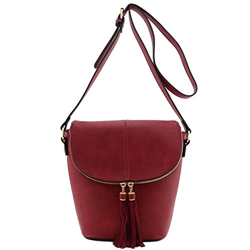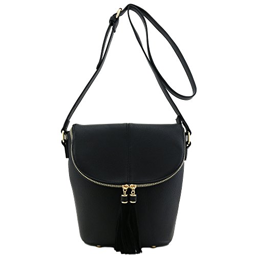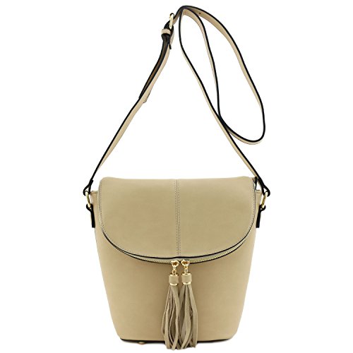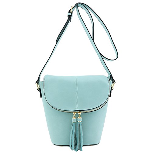 | Flap Top Bucket Crossbody Bag with Tassel Accent |