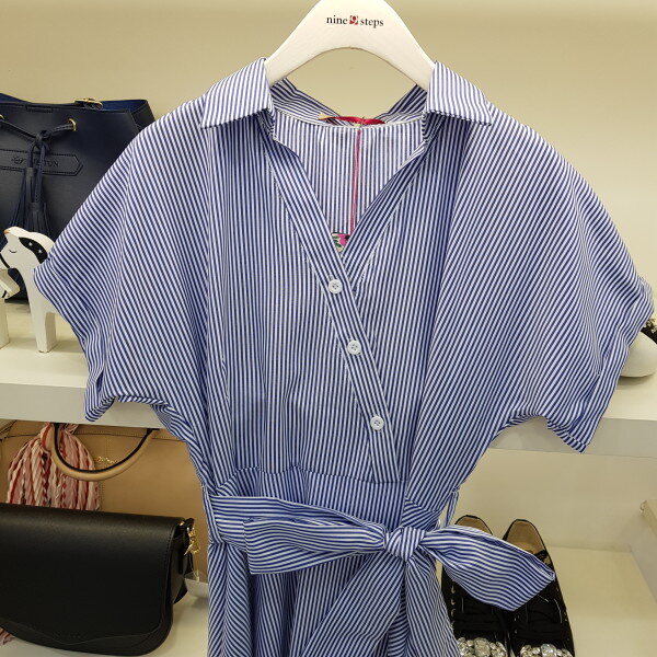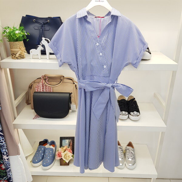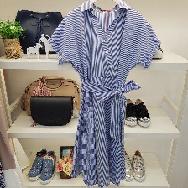 사선단추 디자인 줄지 원피스브이넥으로 시원해보이는 원피스비침없고 A라인입니다