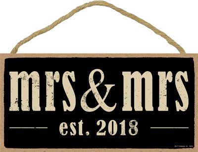 (SJT94632) Mrs & Mrs (est. 2018) 5" x 10" Primitive Wood Plaque