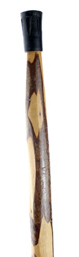 Product Description This 55in. hiking stick is made of Huangtang wood with a wrist strap. The metal tip offers better traction, but it can be covered with the removable metal reinforced rubber tip. 0