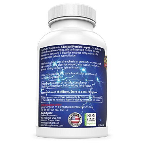 ⚕️,DOCTOR FORMULATED DIGESTIVE SUPPLEMENT DESIGNED FOR PEOPLE WHO SUFFER WITH STOMACH DISCOMFORT: Our Advanced Digestive Enzyme supplement combines plant-based enzymes with a wide array of multi-strain probiotics that support intestinal health daily. These enteric coated tablets are ideal for those who suffer from a wide range of gastrointestinal complications including, but not limited to, irritable bowel syndrome and diarrhea. Enzyme +7 can help concerns customers have and repair gut lining