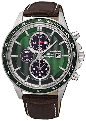 솔라,10기압 방수,크로노그래프,날짜 캘린더,스몰 세컨드,컬러:그린(문자판)고, 블랙(벨트)