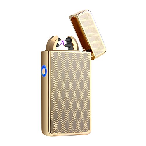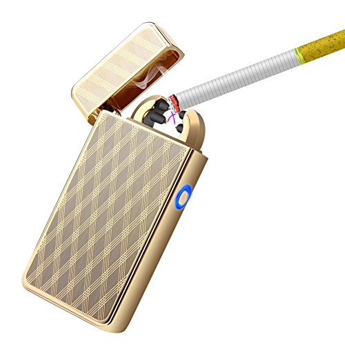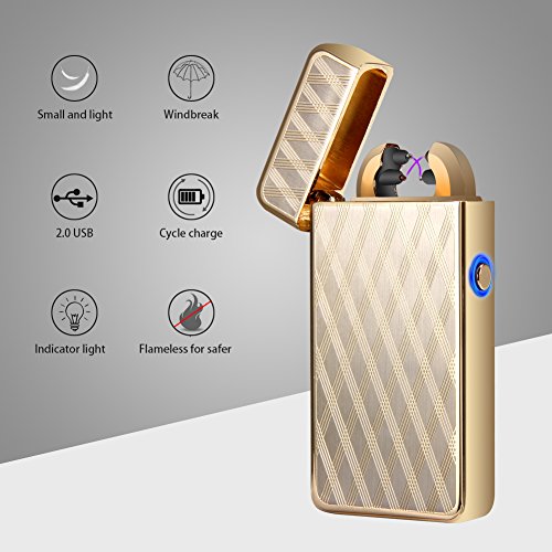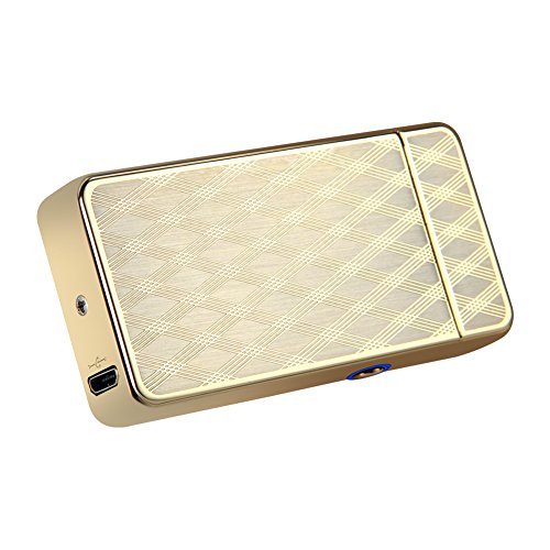 Title : Padgene USB Rechargeable Windproof Flameless Electronic Pulse Cross Arc Lighter Set with USB Charging Cable (Gold)