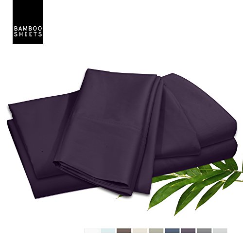 Bamboo Bed Sheet Set, Purple, Queen, Made From 100% Rayon Bamboo Cotton, Luxury Super Silky Soft, Extra Thick Corner Elastic Straps on Fitted Sheet, Flat Sheet & Pillowcases included, Machine Washable