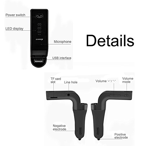- Multi-approaches Music Play: This is a Bluetooth FM Transmitter,which also could support TF cards(32GB),3.5mm audio input and USB disk