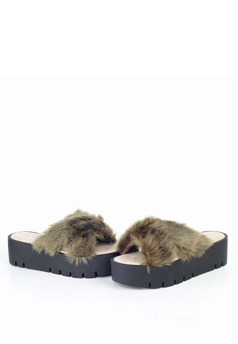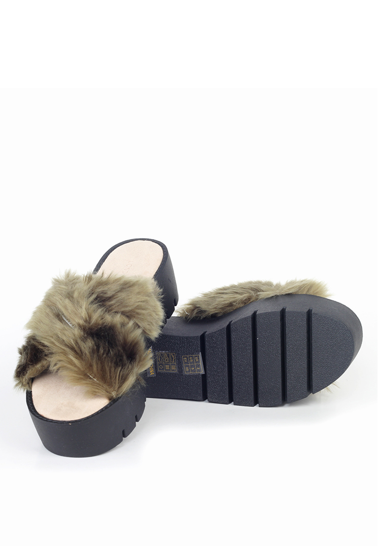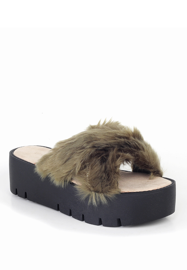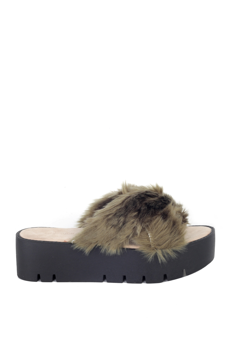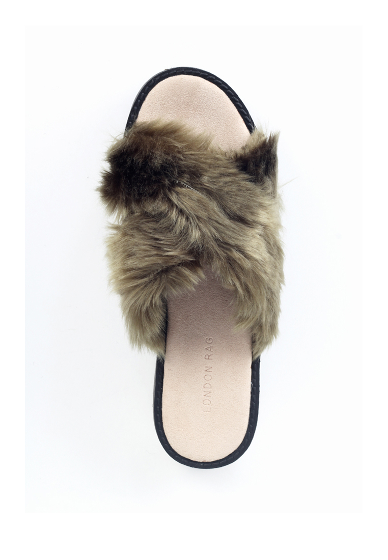 London Rag Women's Summer Black Faux Fur Slipper SH1389