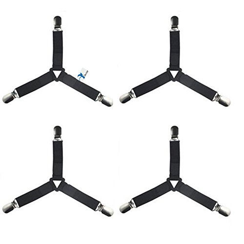 Toweter 4 Pieces A Set ,3-Way Velcro Bed Sheet Fasteners Grippers Suspenders,Sheet Mattress Corner Straps(Black)