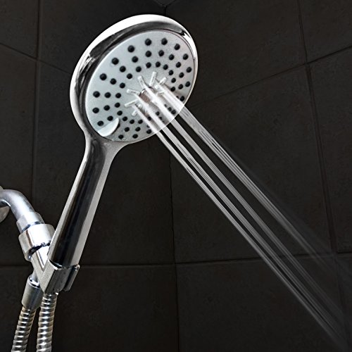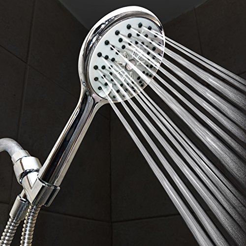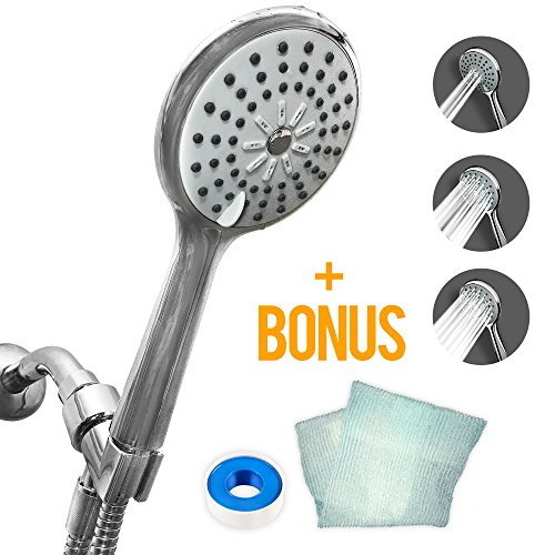 Natural Rapids High-Pressure Handheld Shower-head - For Best Use, Hand Held Showerhead Comes With Stainless Steel Hose, Adjustable Holder, Teflon Tape, & Exfoliating Washcloth - Chrome