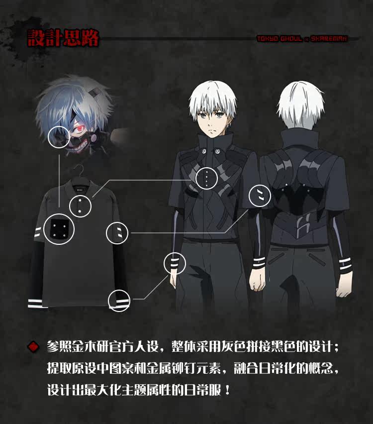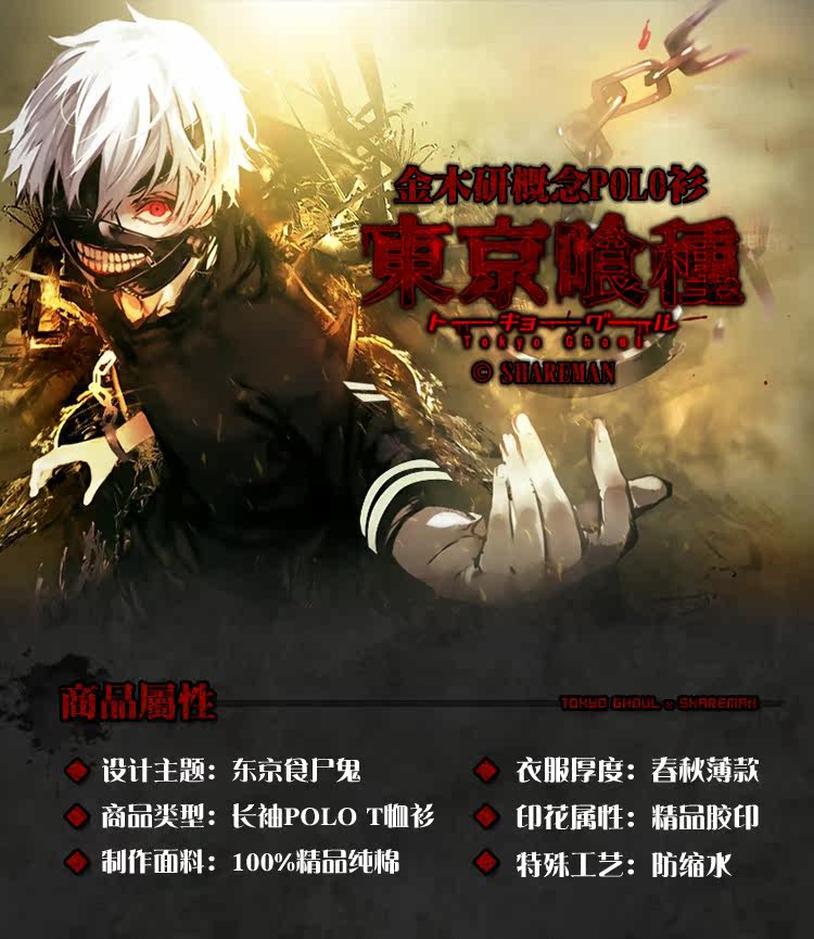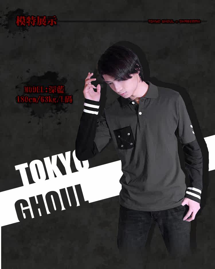 东京喰种 TOKYO GHOUL 金木研 概念长袖POLO T恤