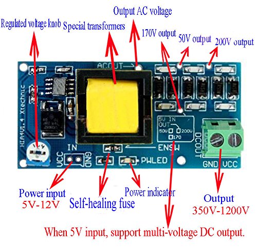 Qianson High Voltage DC-DC Boost Converter 5V-12V to 300V-1200V Adjustable Step up Power Supply Test Module With Case
