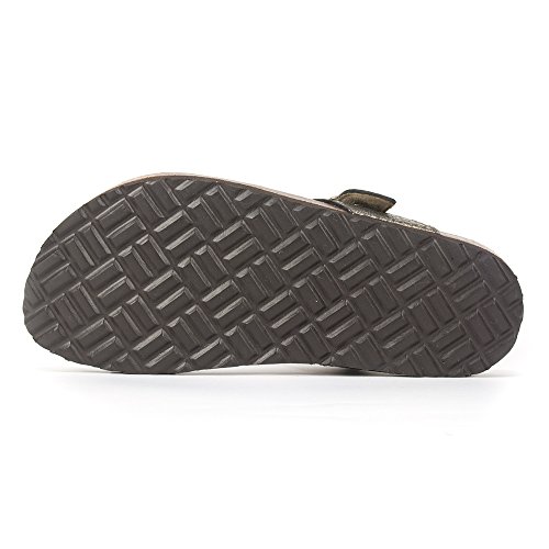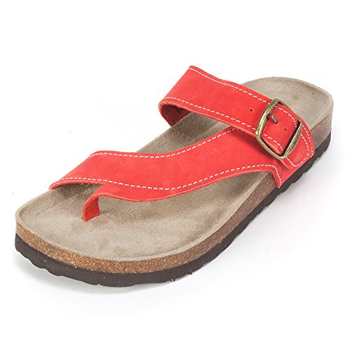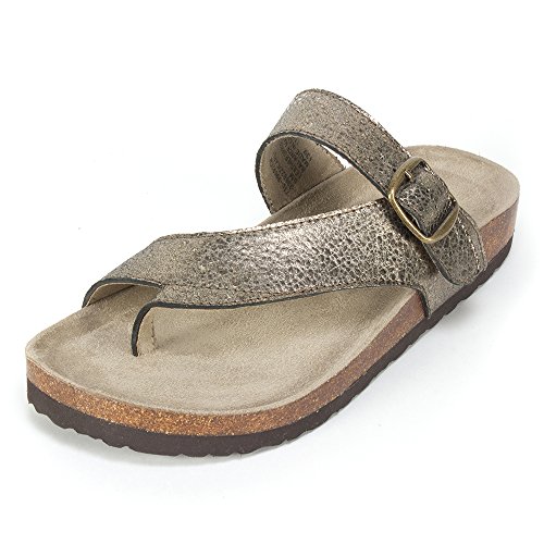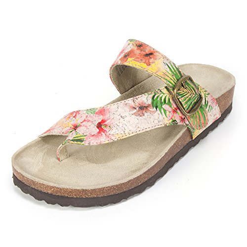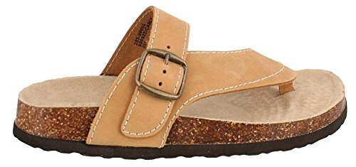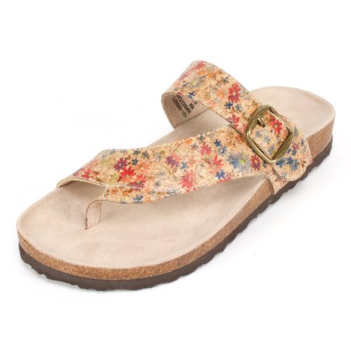 Super comfy carly foot bed will be your go-to sandal! This shoe features sueded padded insole and flexible bottom. Choose leather or cork print upper.