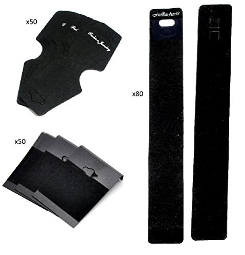 Great starter package with 80 bracelet, 50 earring and 50 necklace/bracelet cards - Bracelet card is 8 inches long; Earring card is 2 1/4 x 1 3/4; Necklace card is 4 1/4 inch before folding over