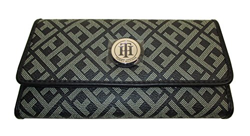 New; Tommy Hilfiger Wallet Black Faux Leather Signature; 19 compartments;