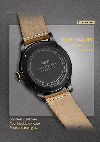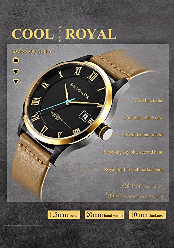 BRIGADA believes watch is not just a timepiece,but also an art--Every watch has its own temperament and matches for different types of people. This BRIGADA watch is a minimalist business casual quartz watch waterproof with gold black and great quality for men.Its temperament is Charming Free and Wild. You will find it is an amazing scenery on your wrist when you wear it.