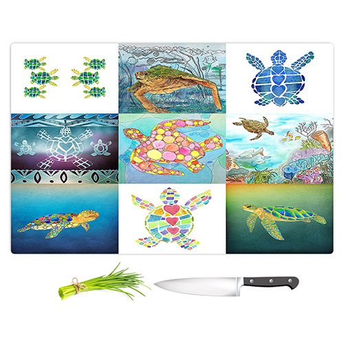 DiaNoche Designs CB-CatherineHolcombeTurtleCollage2 Catherine Holcombe Turtle Collage Cutting Boards from, Large 15" x 11"