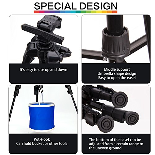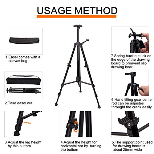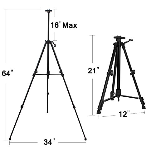 - ART ADJUSTABLE EASELS: Made of high quality aluminum alloy - quite sturdy. Adjustable height: 21"- 63", suitable for adults and kids. The legs are easily adjusted to control height
