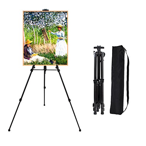 63 Inch Art Tripod Easel Stand- Adjustable Aluminum Floor Easels for Artist Painting, Displaying, Travel Case (Black)