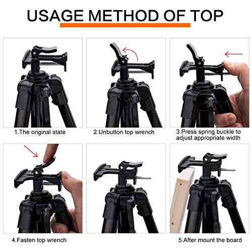 - STURDY TABLETOP : Can hold canvas up to 31.4'' high and support up to 15 Ib. The tripod is connected by three poles, the umbrella shape design keeps it steady compared to other easels