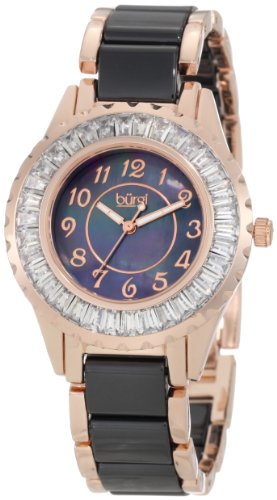 Burgi Women's BUR066BKR Ceramic Bracelet Baguette Quartz Watch