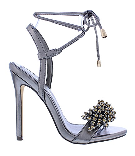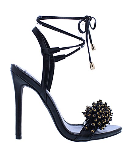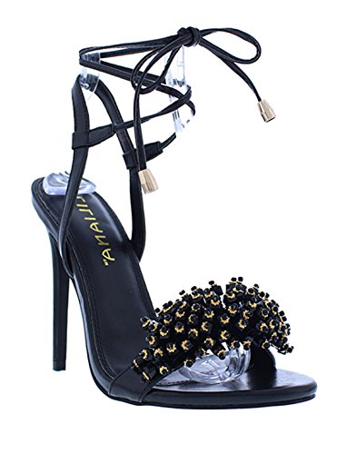Binding : Apparel Product Description This alluring?heel?features a handcraft beads design on vamp, strappy caged design with lace up, wrapped stiletto heel, and enclosed back with zip-up closure. Finished with a lightly padded insole and wrapped around lace up closure. 0