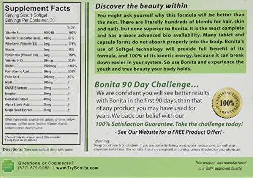 -. Binding : Health and Beauty -. Brand : Essential Source -. EAN : 0705105464350 -. Feature : Dietary Supplement / Superior bio availability / Advanced complex -. IsAdultProduct : 0 -. Label : Essential Source -. LegalDisclaimer : Actual product packaging and materials may contain more and different information than what is shown on our website. We recommend that you do not rely solely on the information presented and that you always read labels, warnings, and directions before using or consuming a product. Please see our full disclaimer below. -. Manufacturer : Essential Source -. Model : B3500 -. MPN : 705105464350 -. NumberOfItems : 1 -. PackageQuantity : 1 -. PartNumber : 705105464350 -. ProductGroup : Health and Beauty -. ProductTypeName : HEALTH_PERSONAL_CARE -. PublicationDate : 2014-12-22 -. Publisher : Essential Source -. ReleaseDate : 2015-06-22 -. Size : 2 oz -. Studio : Essential Source -. Title : Essential Source Bonita Hair Skin and Nails, 30 Count -. UPC : 705105464350