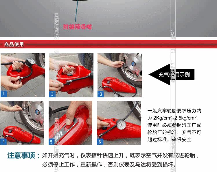 if the pressure rises rapidly in a short time (seconds up to 689K) said the air pressureis blocked, without air into the tire put off the power immediately go to the gas nozzle re operation. Air every 15 minutes, it is best to take a break.