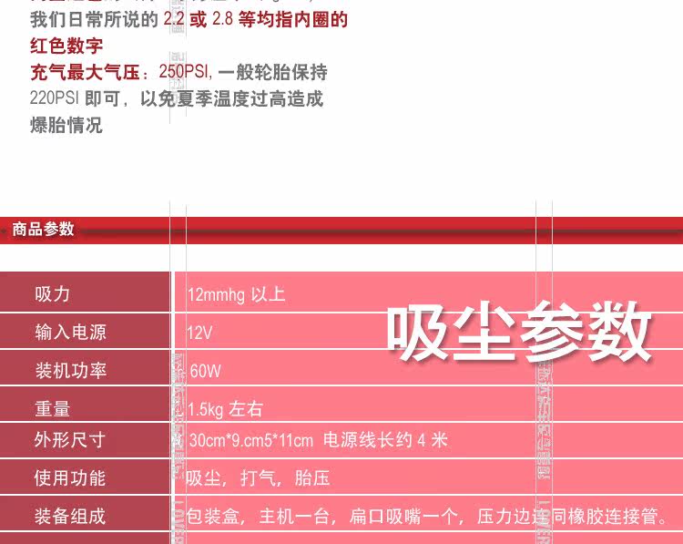 1 inflation maximum pressure: 250PSI (general tire holding 220PSI) rugged enclosure.