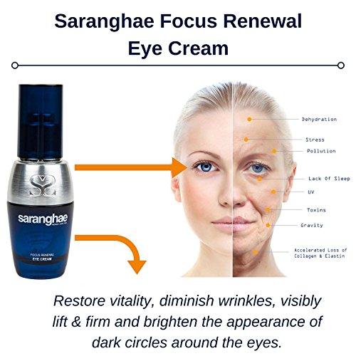 -. Feature : Best Korean Under Eye Cream - The Focus Renewal Eye Cream was specifically formulated to increase the level of ceramides and free fatty acids in the skin for maximum moisture retention. It helps to hydrate the eye area and reduce fine lines and wrinkles around your eyes / Tightens Sagging, Loose Skin Around The Eyes - By penetrating deeper past the epidermis layer, our formula injects vital living nutrients directly to skin cells, while neutralizing skin cell waste by-products / Reduce Dark Circles, Swelling & Puffiness - Our incredibly smooth, soft and luxurious eye cream dramatically increases cellular nutrient delivery by increasing blood circulation. This effective formulation aids in keeping your under eye skin vibrant and healthy. This also allows for smoother, more finished application of eye make up / Why Saranghae? Saranghae follows ancient Korean philosophy where all products stem from herbs and plants that have incredible healing properties. Saranghae is about nurturing and caring for your skin vs. applying quick fixes (hence our 5 step anti-aging routine). Our mission is to bring the power and beauty of Asian botanicals to the world. It's why our name "Saranghae" means "I Love You" In Korean / Our Promise - We promise to always use the highest quality ingredients, keep innovating on our formulas and providing you a delightful customer experience. We also offer you a 30 Day Full Satisfaction Money Back Guarantee