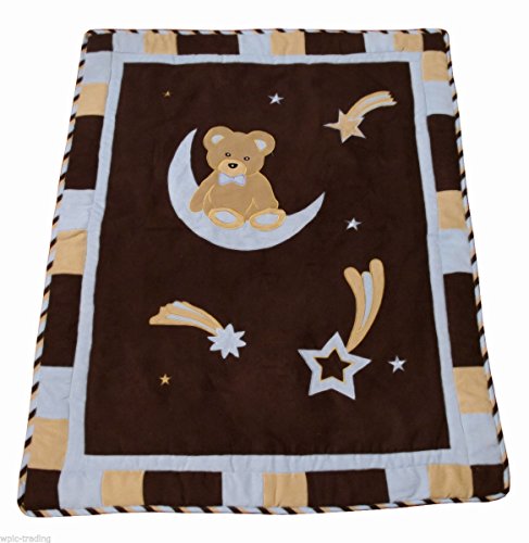 SISI Baby Bedding - Blue Bear and Moon 14 PCS Crib Bedding Including Music Mobile