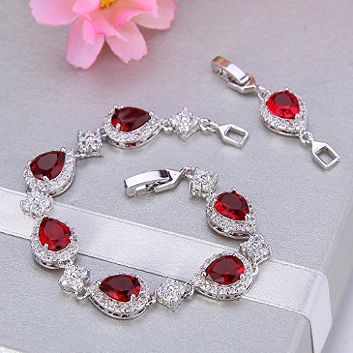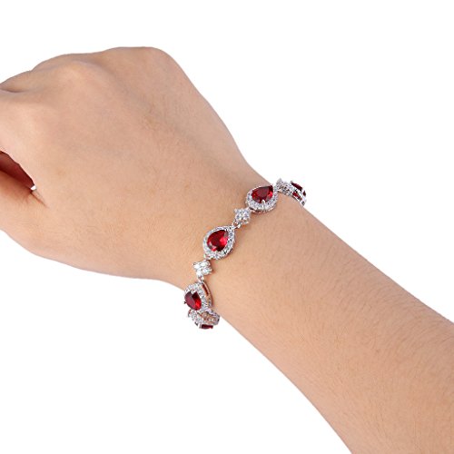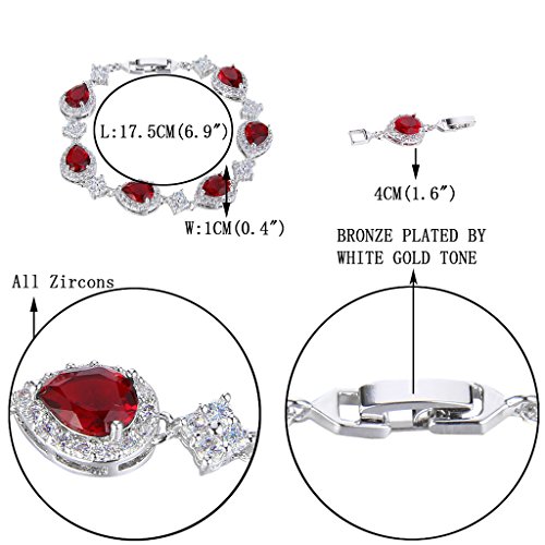 -. Title : EVER FAITH® Silver-Tone Cubic Zirconia January Birthstone Wedding Tear Drop Link Bracelet Red Ruby-color