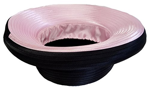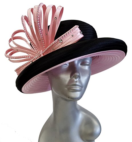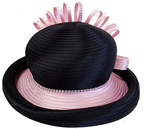Binding : Apparel Product Description WOMEN'S FASHION/ DESIGNER COUTURE, DRESS, CHURCH, (ALL YEAR-AROUND) SATIN RIBBON HAT This magnificent and bright colored couture satin ribbon hat is a 2 tone black/Fuchsia color. The rounded crown and rolled medium size up brim makes it truly unique! The hat is trimmed with matching rows of crystal rhinestones. The hat has an adjustable sweatband to fit almost any head size and the satin ribbon makes this a hat that can be worn all year around 0