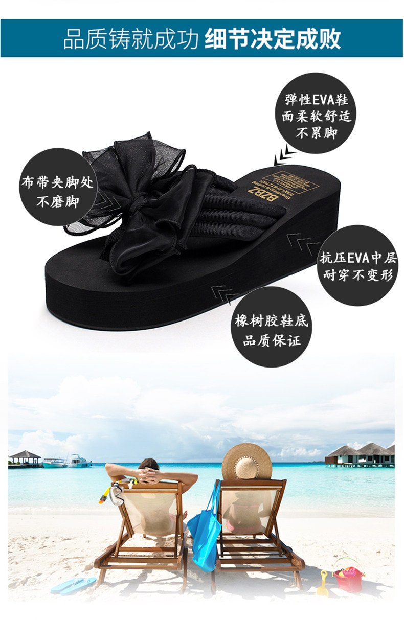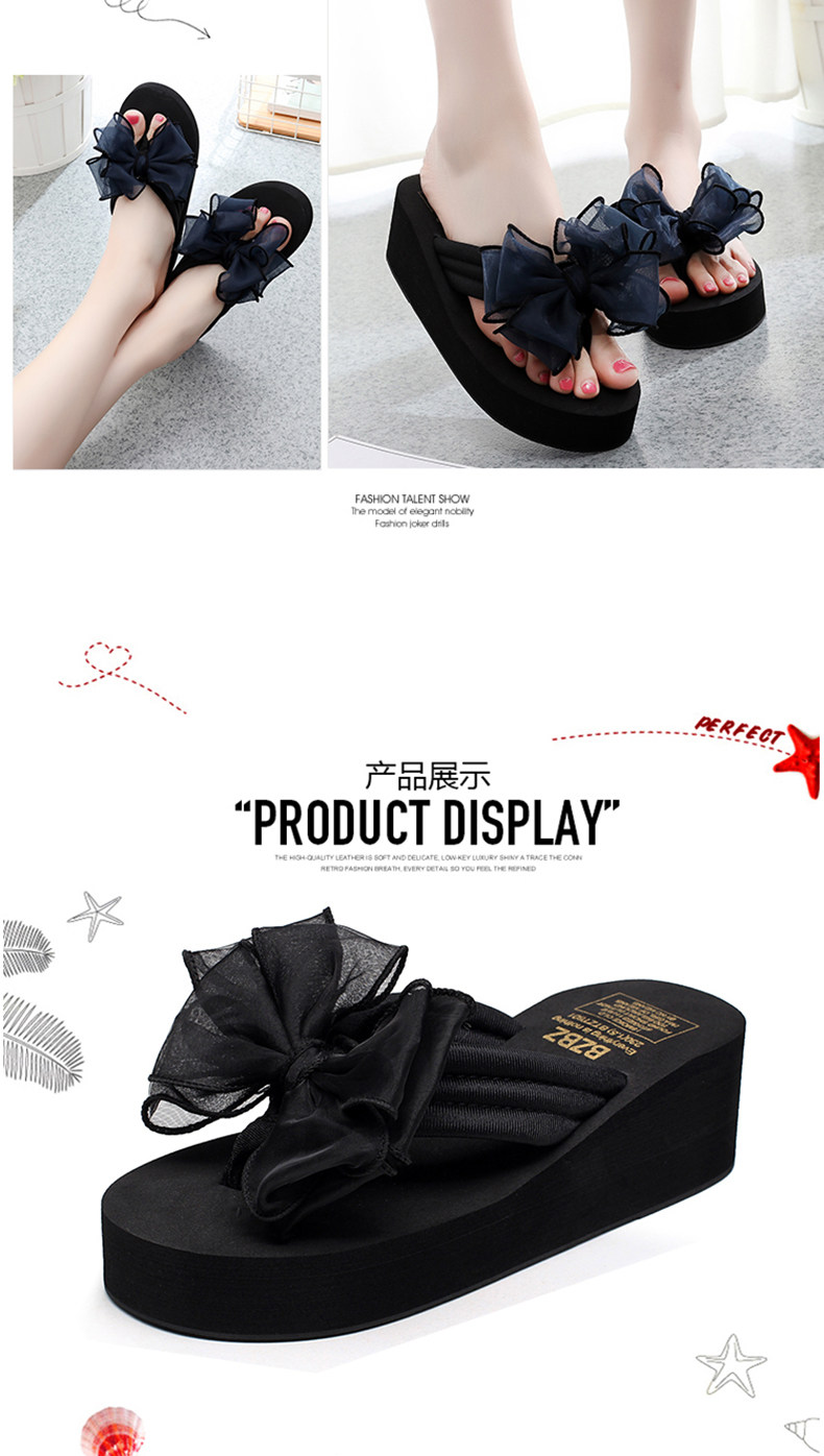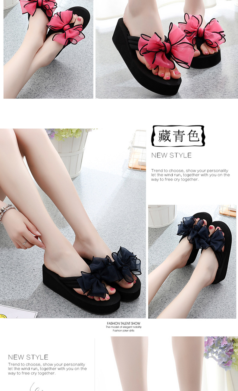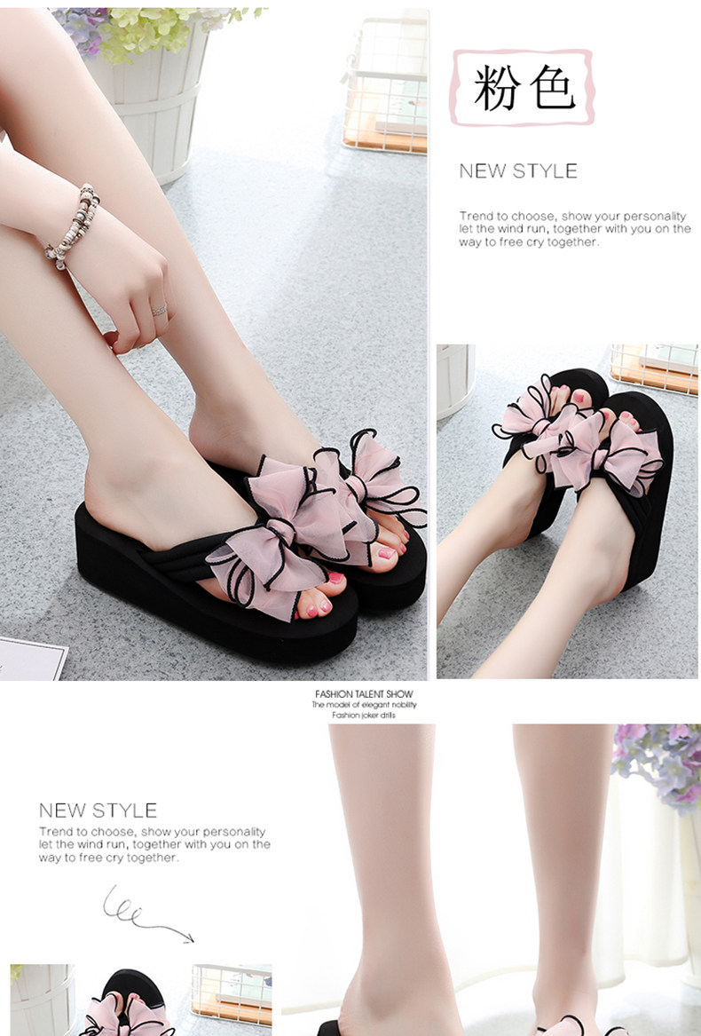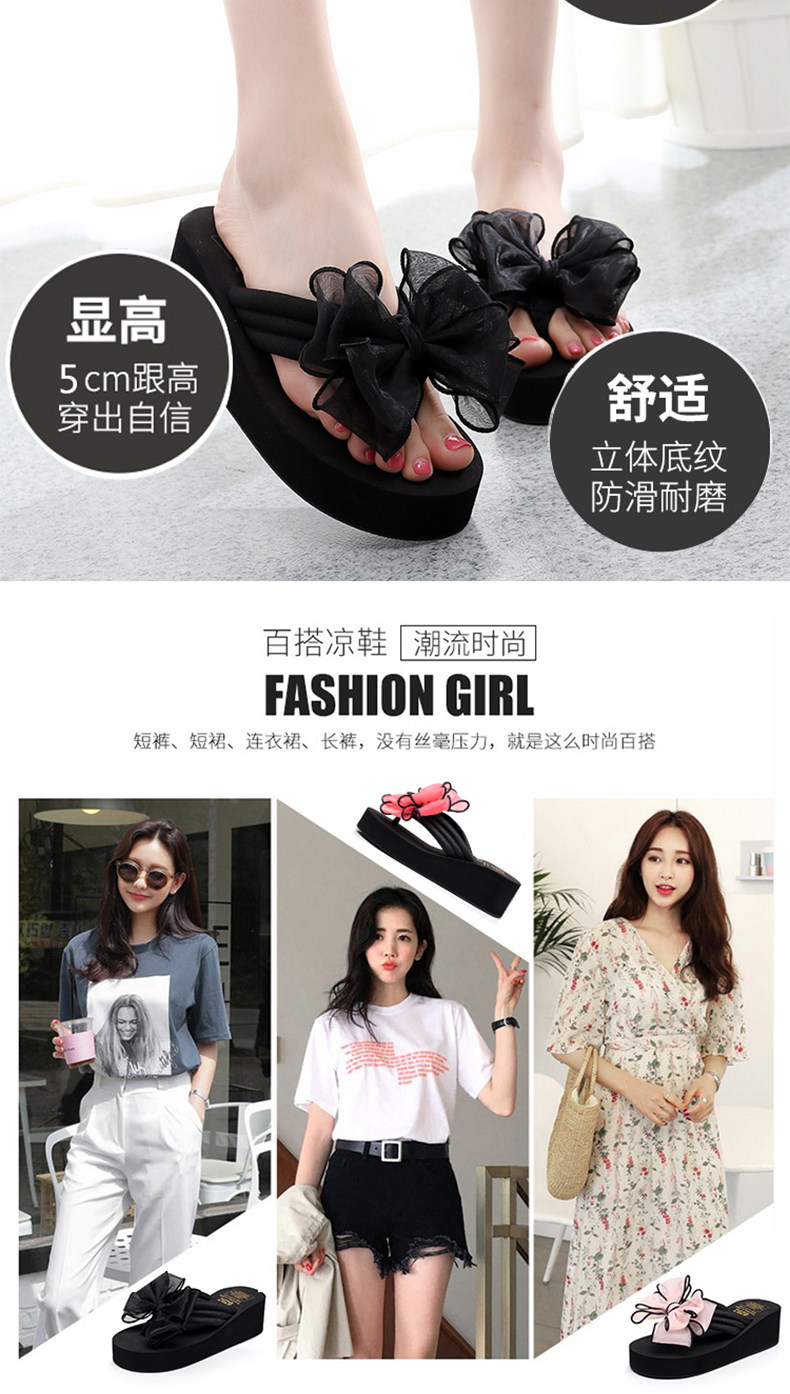 外穿拖鞋女夏季新款蝴蝶结人字拖厚底沙滩拖鞋防滑夹脚坡跟凉拖鞋