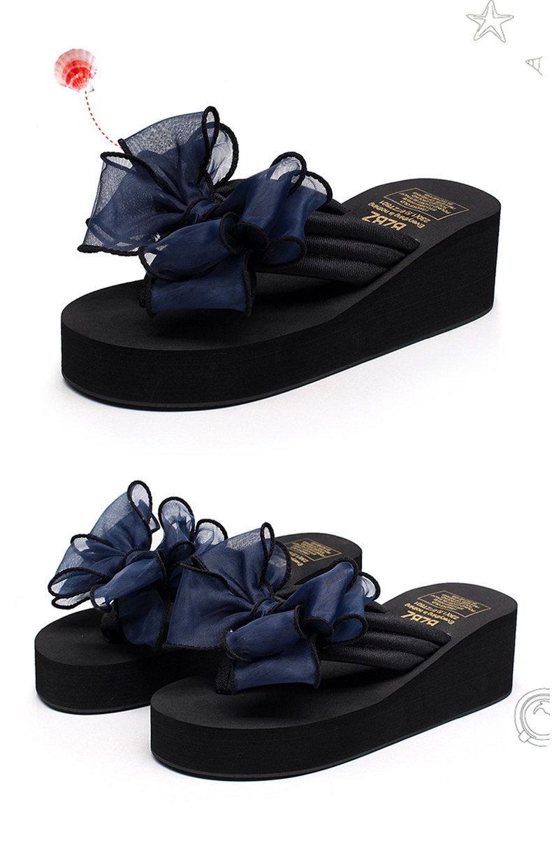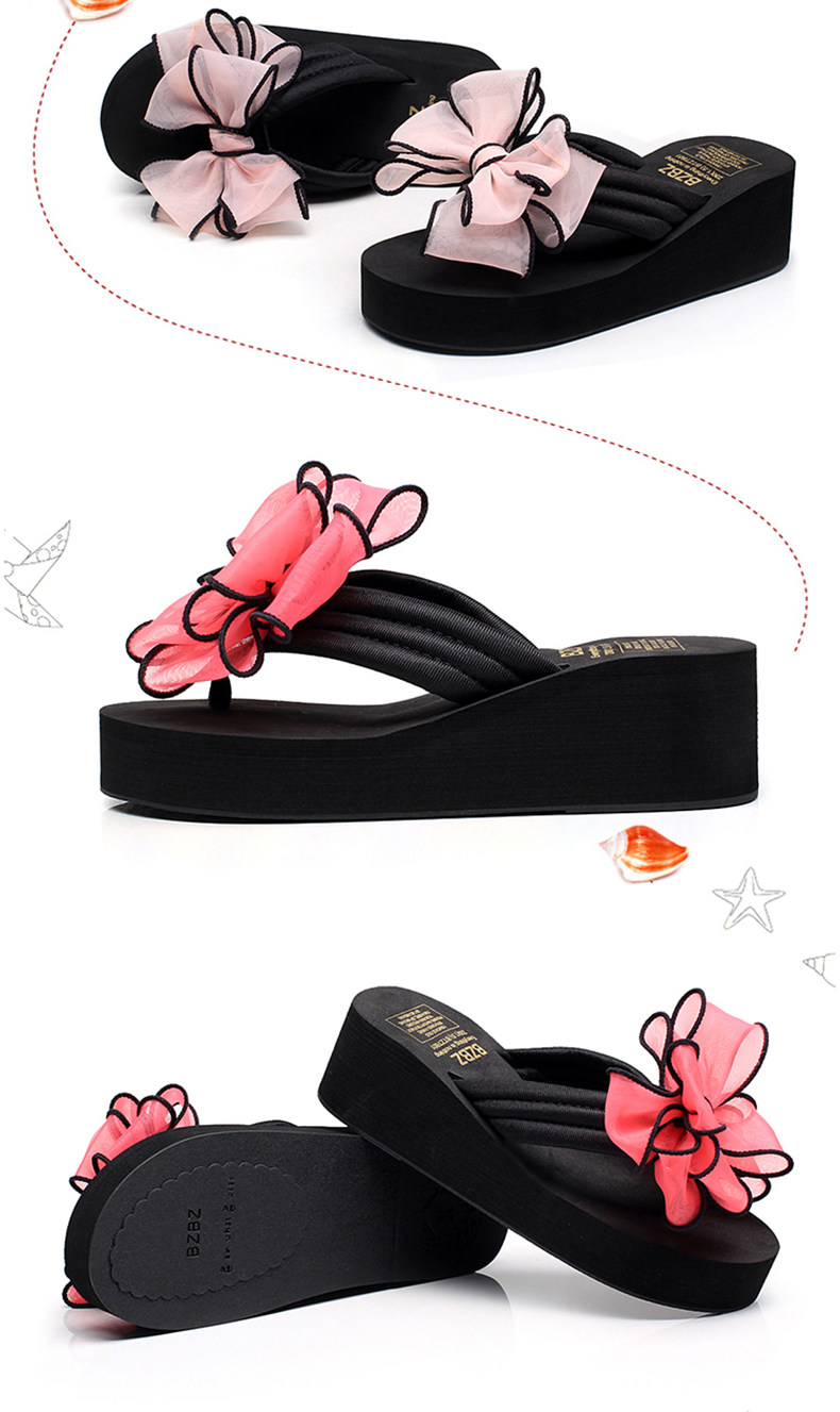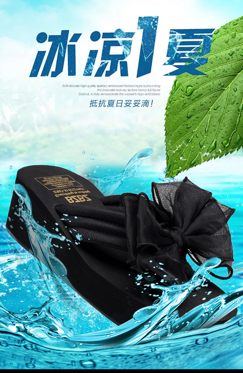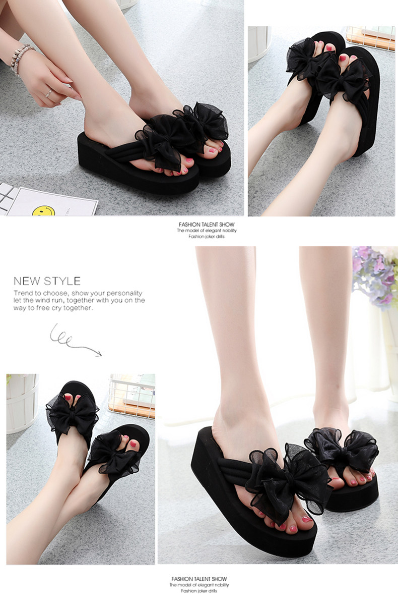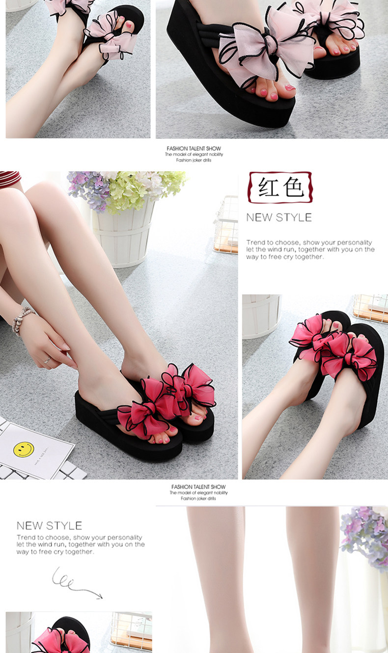 外穿拖鞋女夏季新款蝴蝶结人字拖厚底沙滩拖鞋防滑夹脚坡跟凉拖鞋