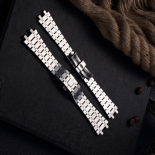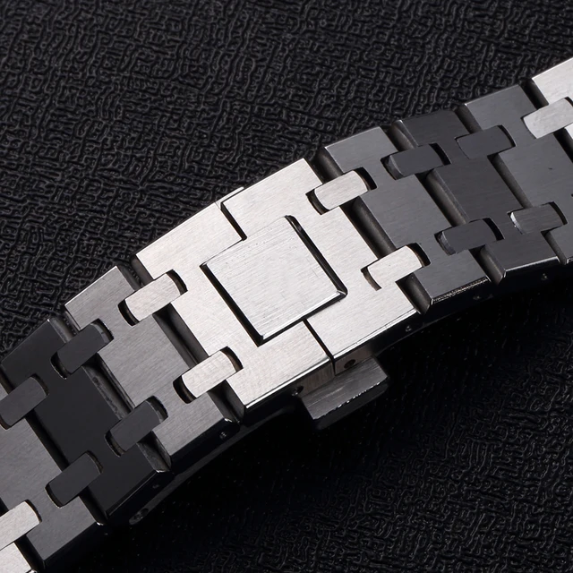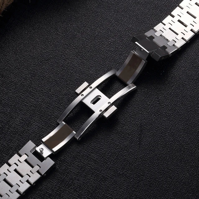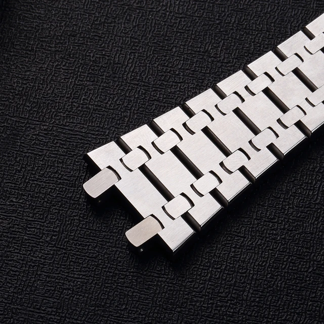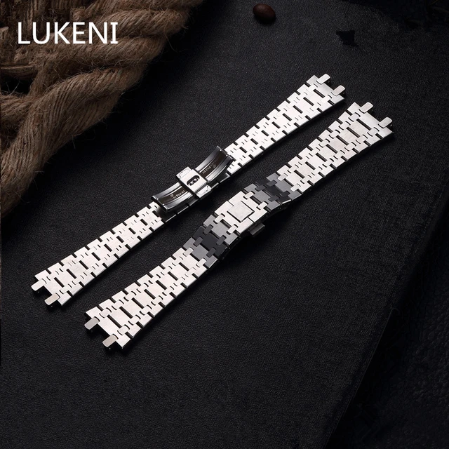 | [해외]Lukeni 원래 26 미리메터 실버 남성 전체 스테인레스 스틸 시계 스트랩 벨트 팔찌, butterfly 걸쇠 wacthband ap 시계 로고 |