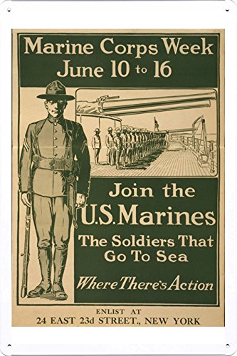 World War I One Tin Sign Metal Poster (reproduction) of Marine Corps week June 10 to 16--Join the U.S. Marines The soldiers that go to sea--Where there's action.