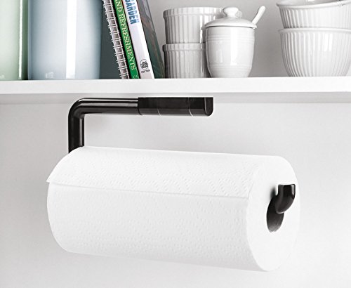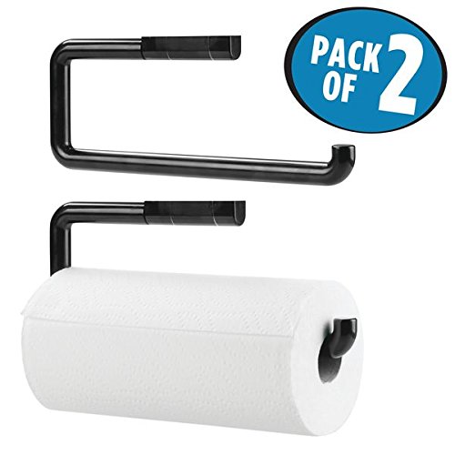 mDesign Paper Towel Holder for Kitchen - Pack of 2, Wall Mount/Under Cabinet, Black