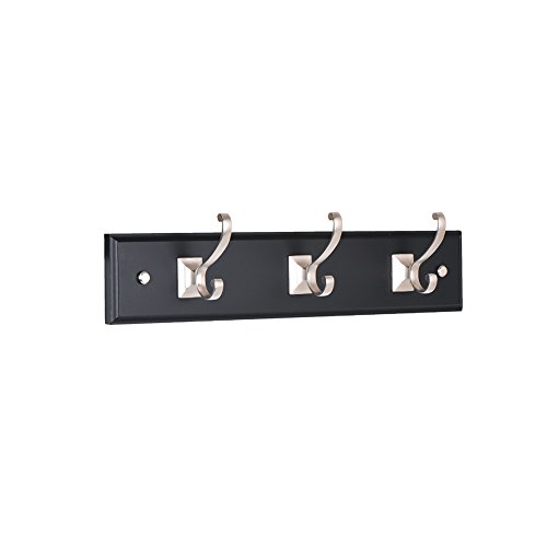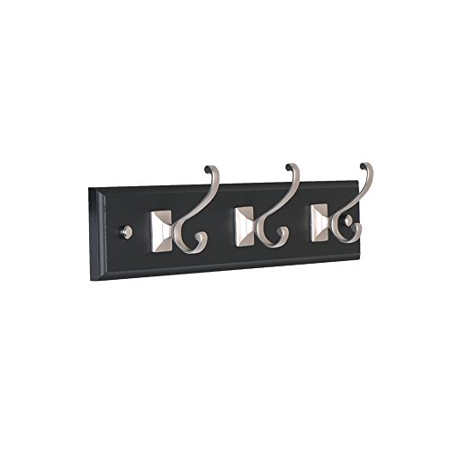 Wall Mounted Coat Rack and Hook Rail - 3 Hooks Vellum Design. Black Wood & Satin Nickel