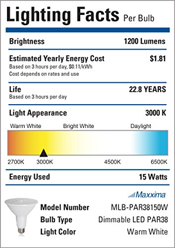 Maxxima PAR38 LED Indoor / Outdoor Warm White Light Bulb 1200 Lumens 15 Watts 120 Watt Equivalent 3000K 90 CRI Dimmable Energy Star Flood Light (2 Pack)