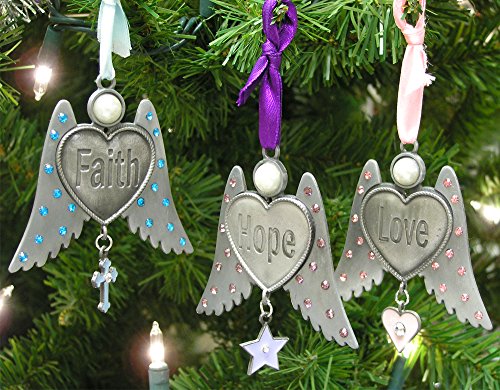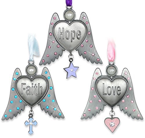 Angel Ornaments - Faith Hope and Love Angel Wings - Jeweled Wings and Hanging Charms - Angel Christmas Ornaments