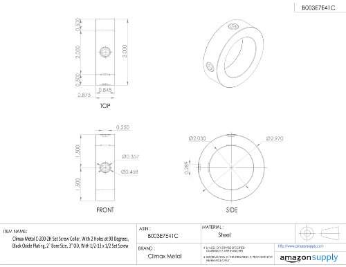Climax Metal C-200-2H Set Screw Collar, With 2 Holes at 90 Degrees, Black Oxide Plating, 2" Bore Size, 3" OD, With 1/2-13 x 1/2 Set Screw